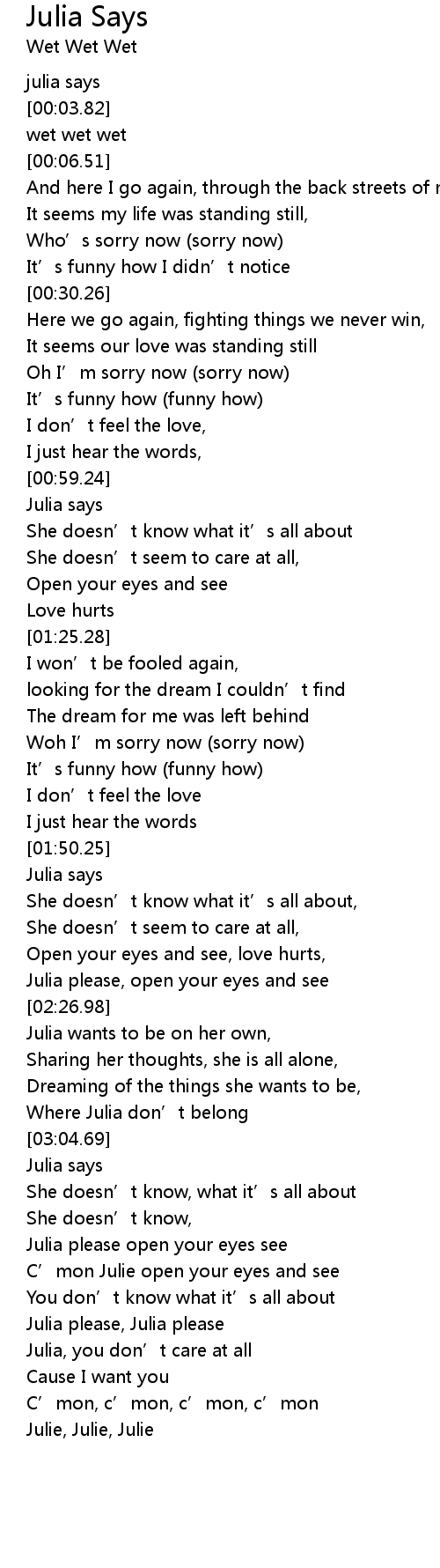| [03:23.29] | C' mon Julie open your eyes and see |