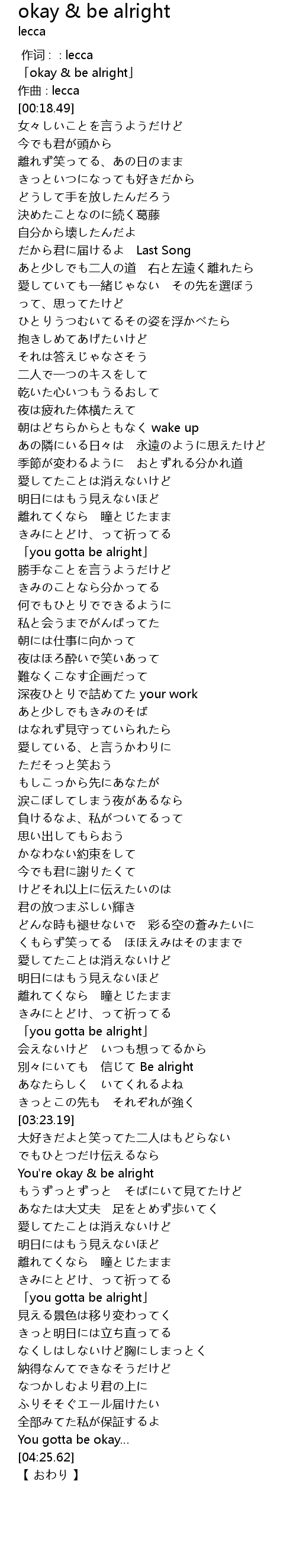 | [03:06.82] | 別々にいても 信じて Be alright |