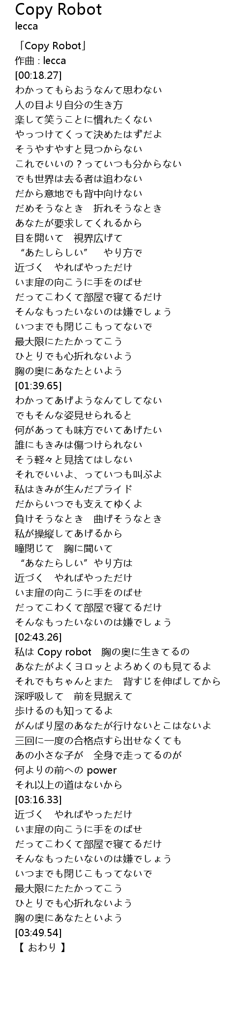 | [02:44.49] | 私は Copy robot 胸の奥に生きてるの |