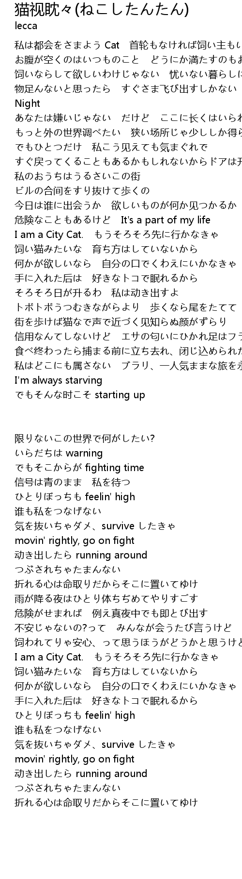 | 私は都会をさまよう Cat 首轮もなければ饲い主もいない | |