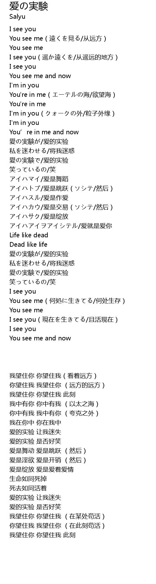 | I see you xiàn zài shēng qiě huó xiàn zài | |