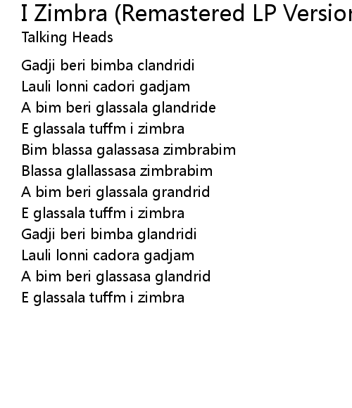 | Song | I Zimbra (Remastered LP Version ) |