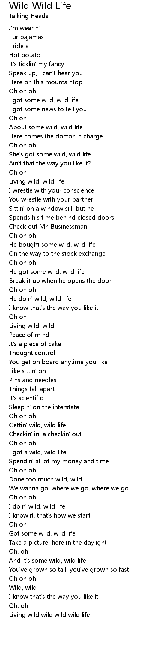 Song Wild Wild Life
