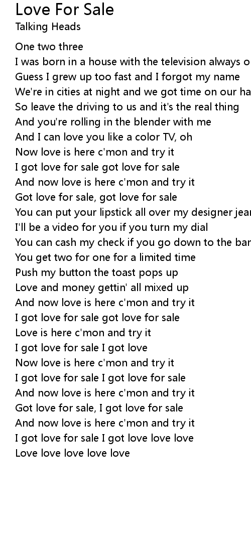 Got love for sale, got love for sale |