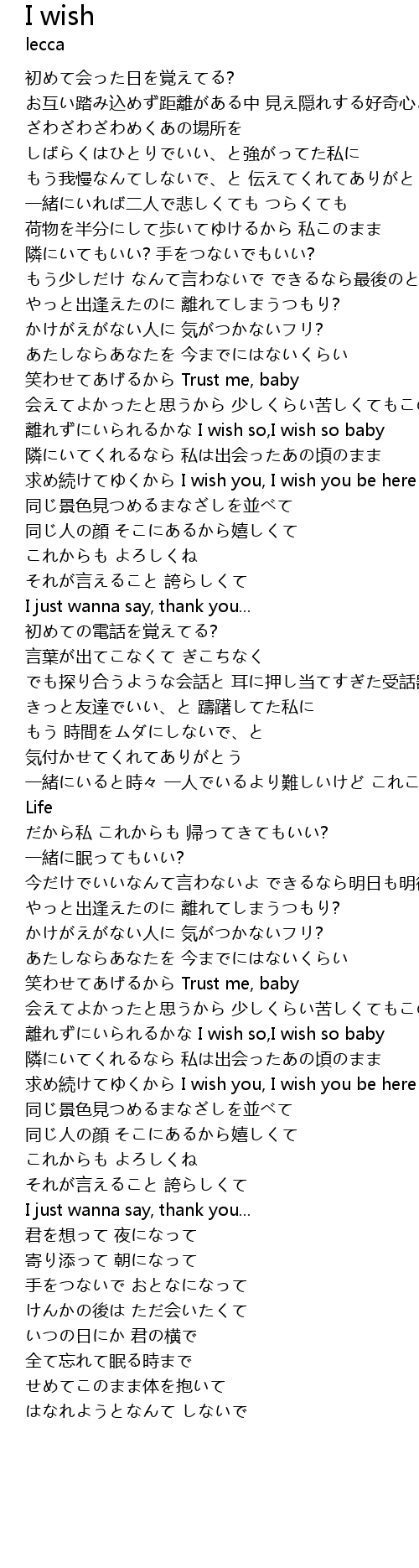 | 離れずにいられるかな I wish so,I wish so baby | |