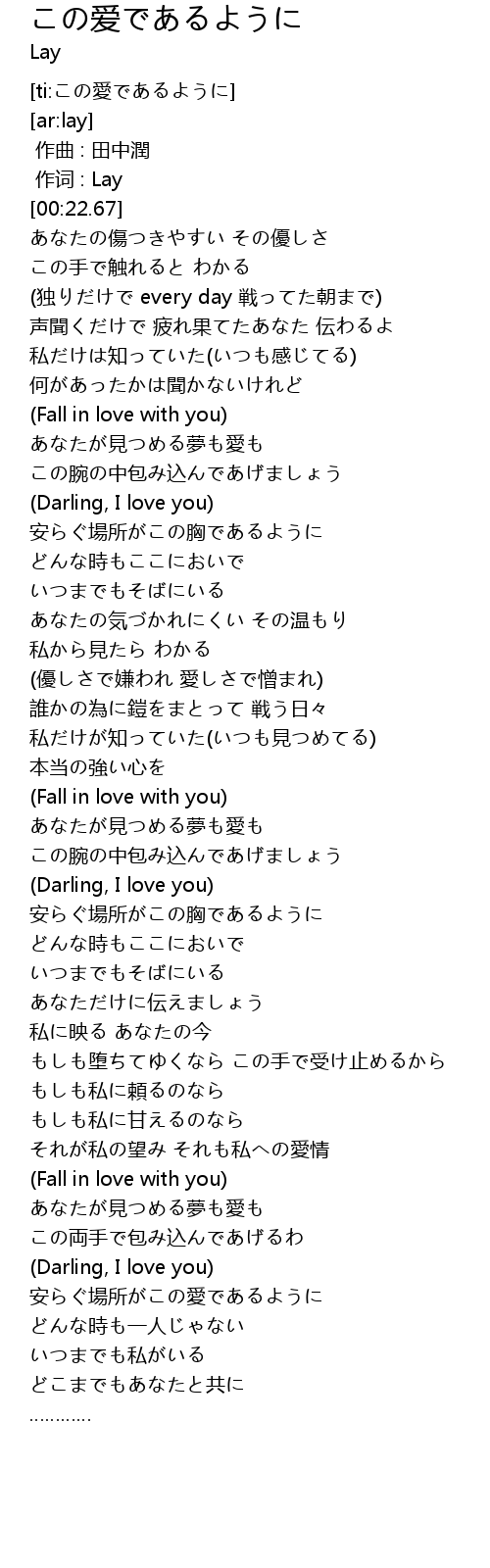 | [04:37.66] | 安らぐ場所がこの愛であるように |