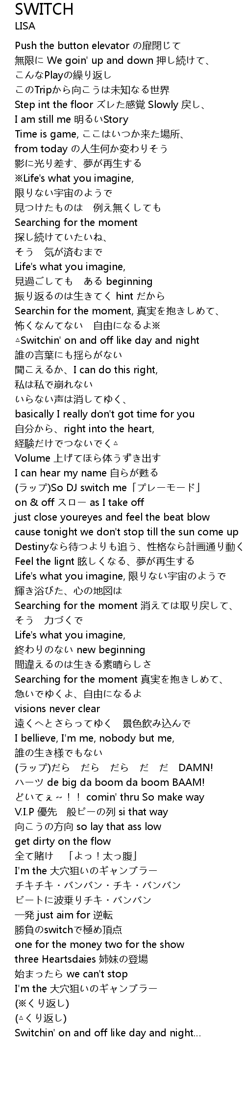| 無限に We goin' up and down 押し続けて、 | |