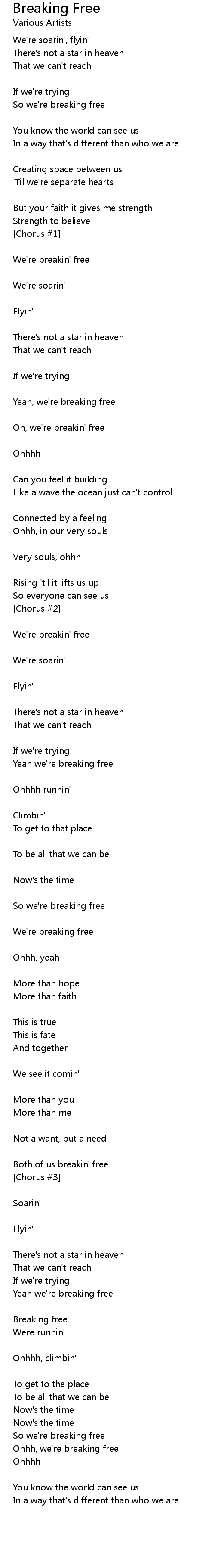 Oh, we're breakin' free |
