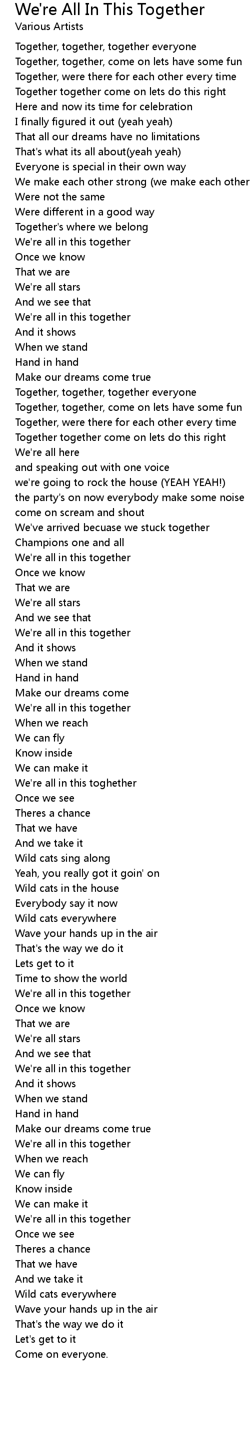 Together, together, together everyone |