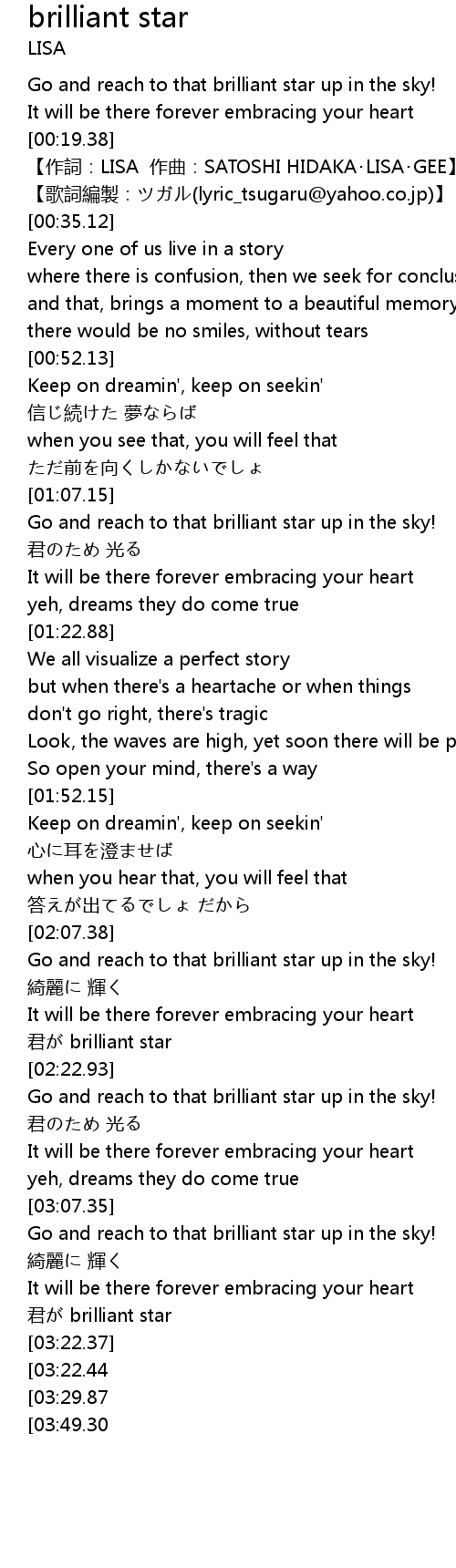 | [03:37.36][03:22.44] | Go and reach to that brilliant star up in the sky! |