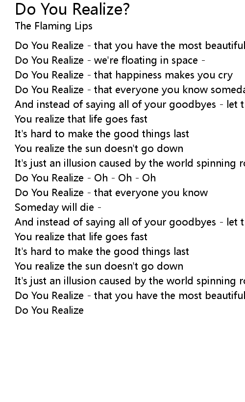 Do You Realize - Oh - Oh - Oh |