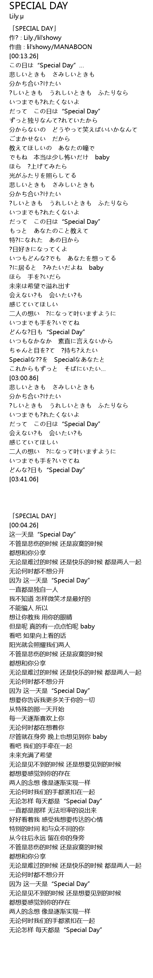 | [02:50.24] | Specialな??を Specialなあなたと |