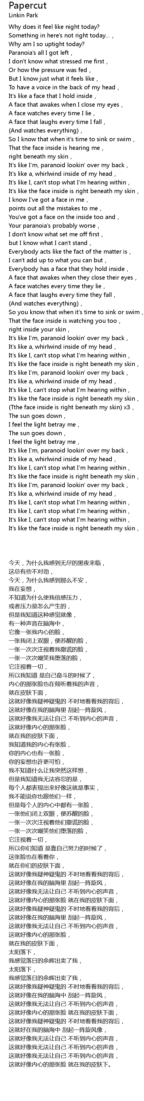 | [01:52.68] | (Tthe face inside is right beneath my skin) x3, |