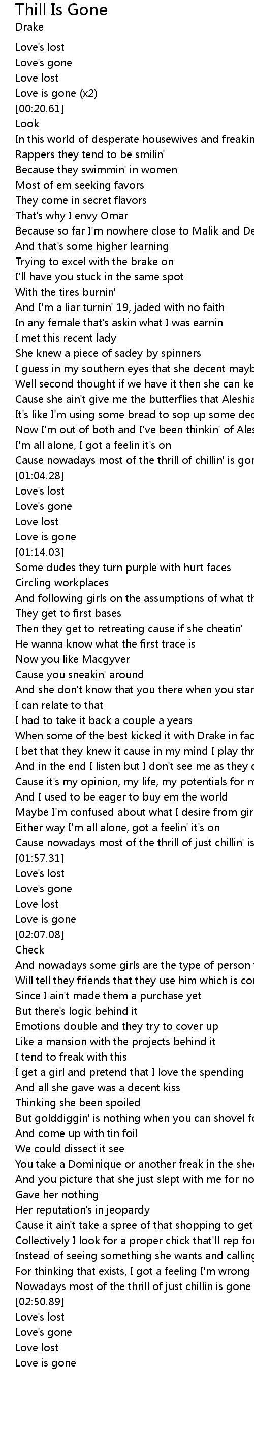 Cause nowadays most of the thrill of chillin' is gone and uh |
