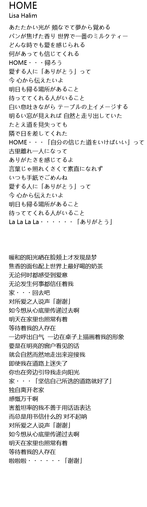| [00:55.60] | HOME・・・帰ろう |