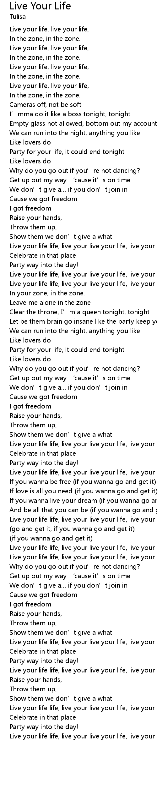 | Live your life life, live your live your life, live your life. |