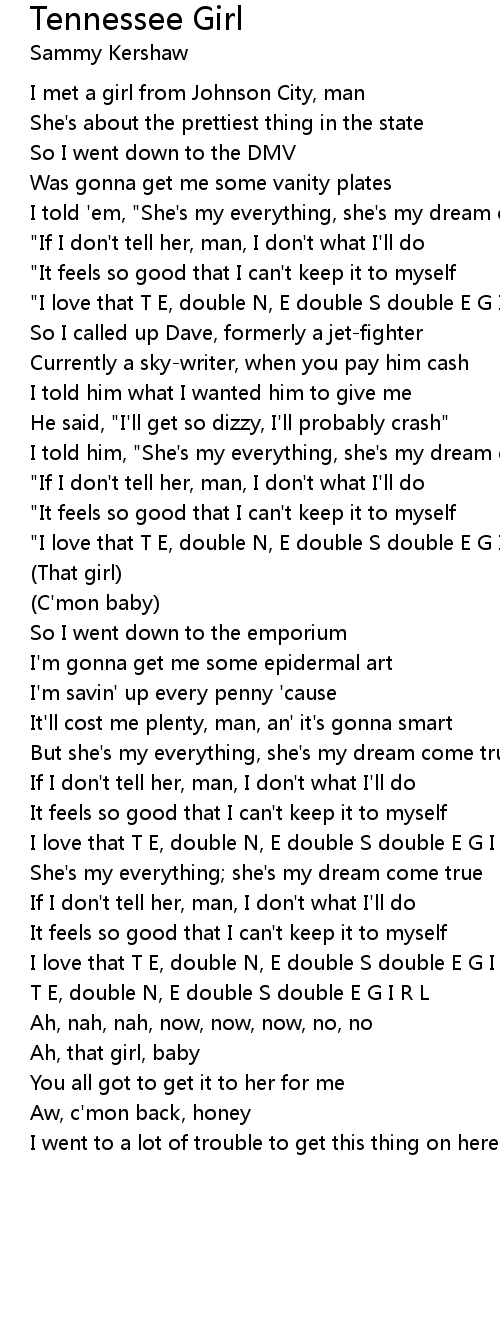 "I love that T E, double N, E double S double E G I R L" |