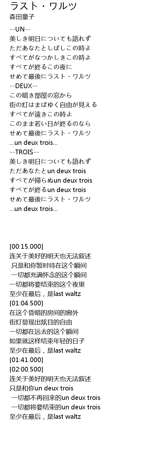 | [02:16.500] | すべてが帰らぬun deux trois |