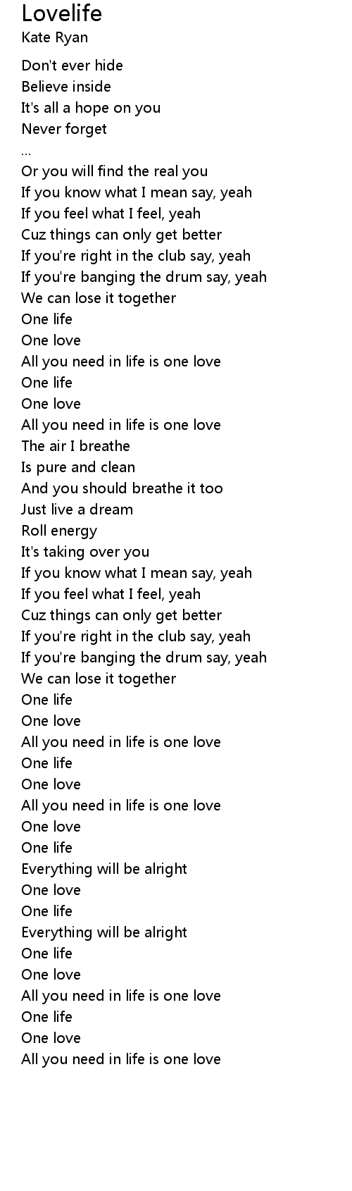 All you need in life is one love |