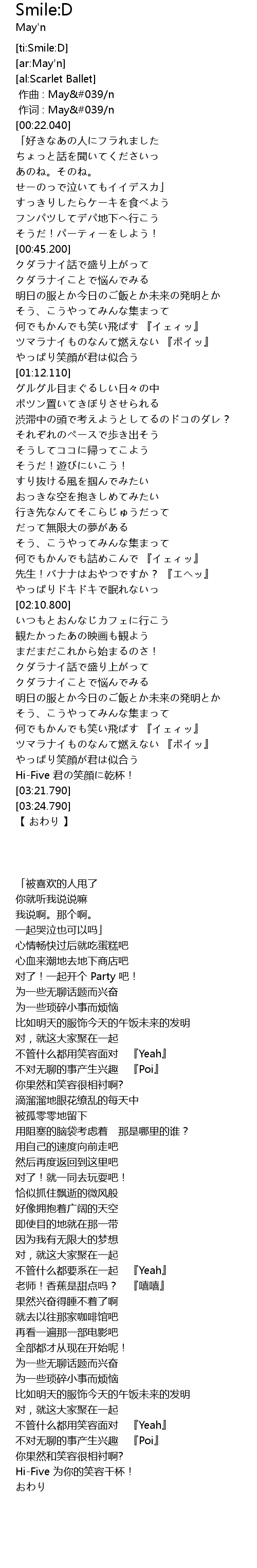 | [03:09.530] | やっぱり笑顔が君は似合う |