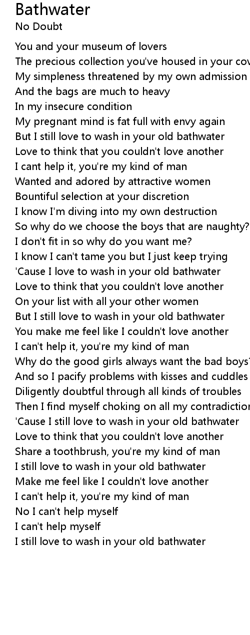 | I still love to wash in your old bathwater |