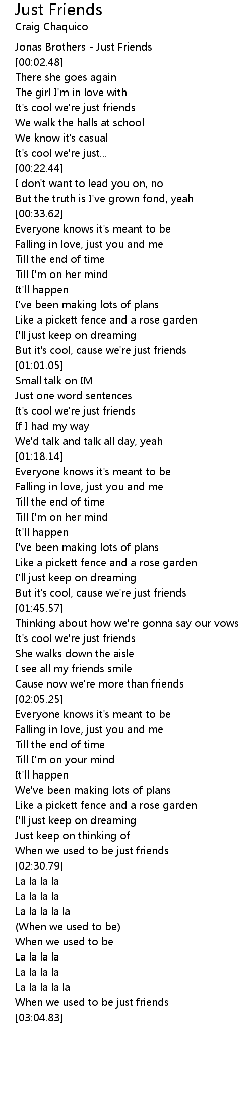 It's cool we're just friends |