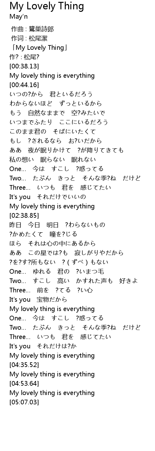 | [03:39.38] | Two… すこし 高い かすれた声も 好きよ |