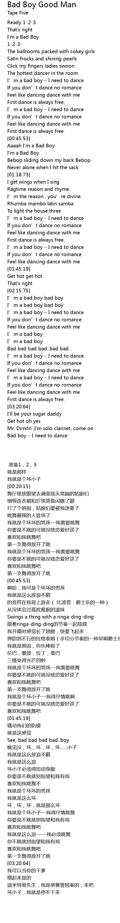 | [00:59.24] | Aaaah I m a Bad Boy |