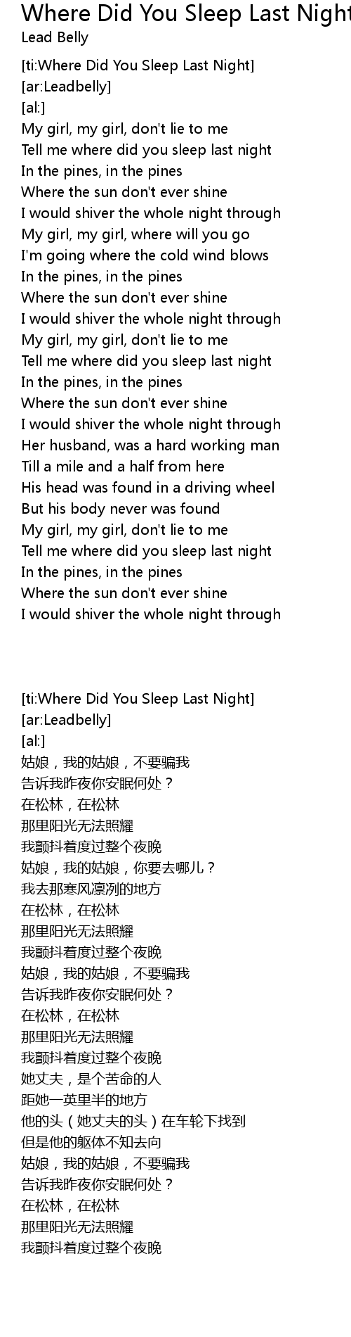 [ti:Where Did You Sleep Last Night] |