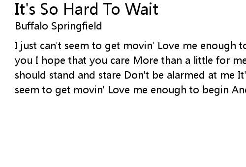 | Song | It's So Hard To Wait |