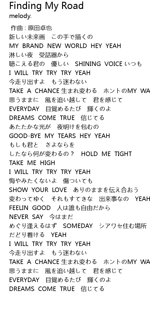 | [03:33.92] | TAKE A CHANCE shēng biàn MY WAY |