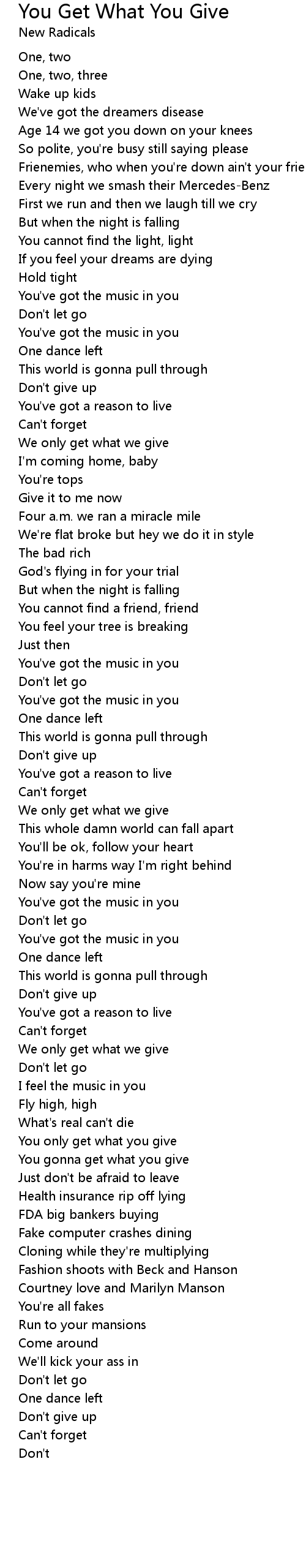 You gonna get what you give |
