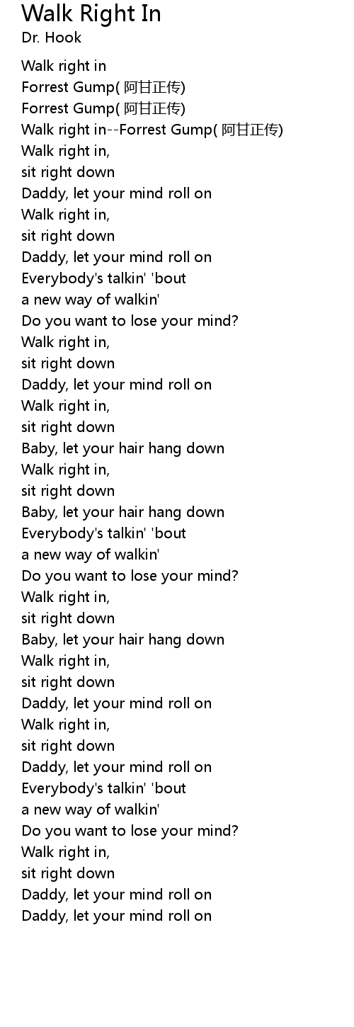 | [00:02.90] | Walk right in--Forrest Gump( 阿甘正传) |