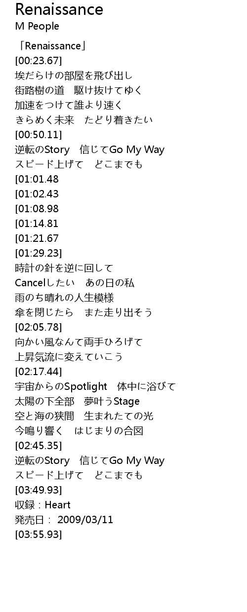 | [00:01.67] | 「Renaissance」 |