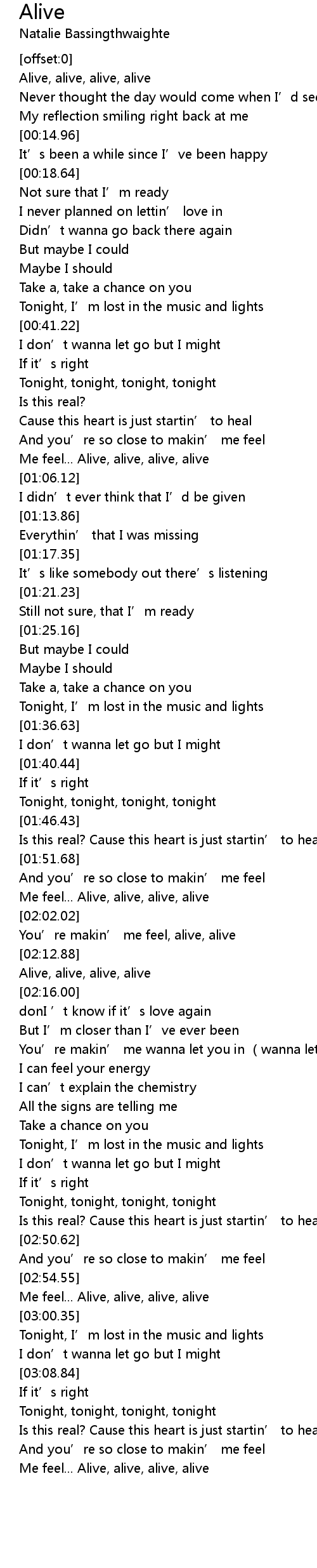 | [01:00.69] | Me feel... Alive, alive, alive, alive |