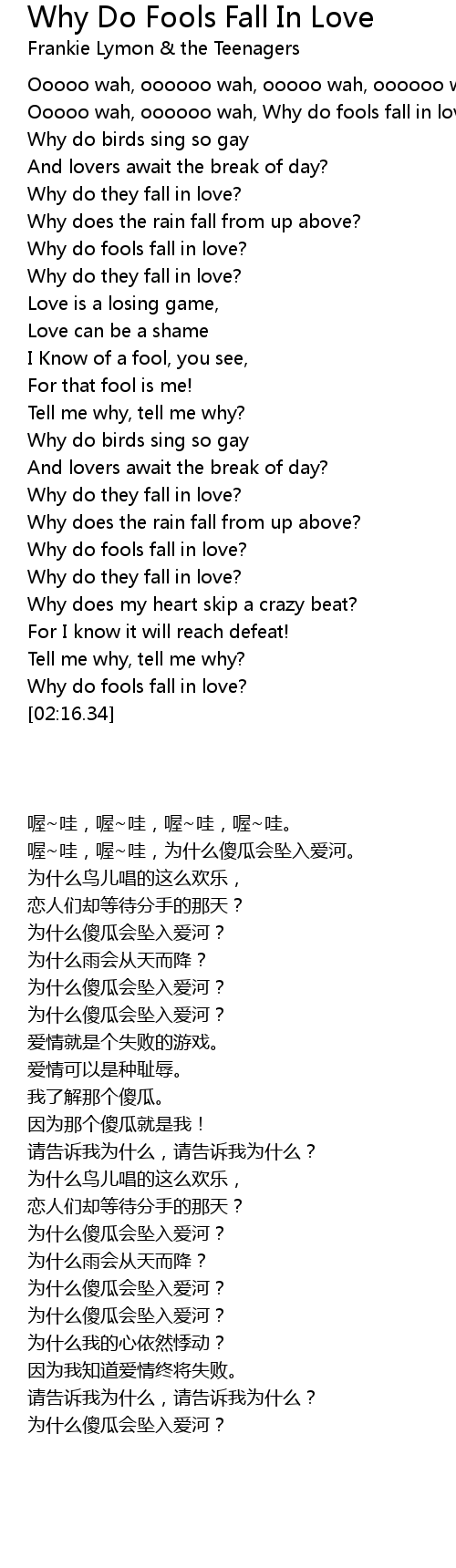 Ooooo wah, oooooo wah, Why do fools fall in love |