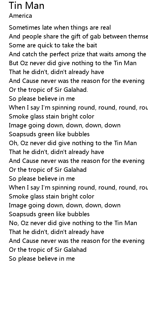 Oh, Oz never did give nothing to the Tin Man |