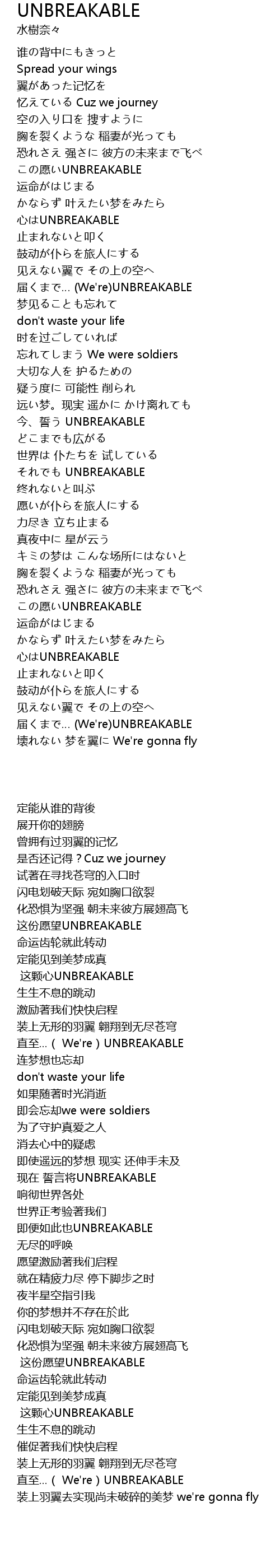 | [04:01.290] | jie We' re UNBREAKABLE |