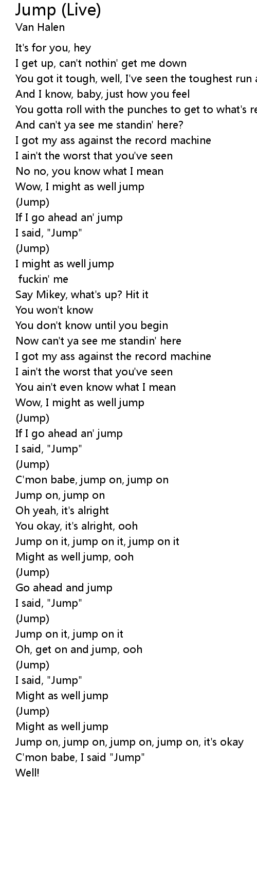 C'mon babe, I said "Jump" |