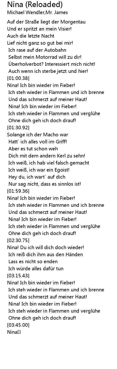 | [02:01.70] | Nina! Ich bin wieder im Fieber! |