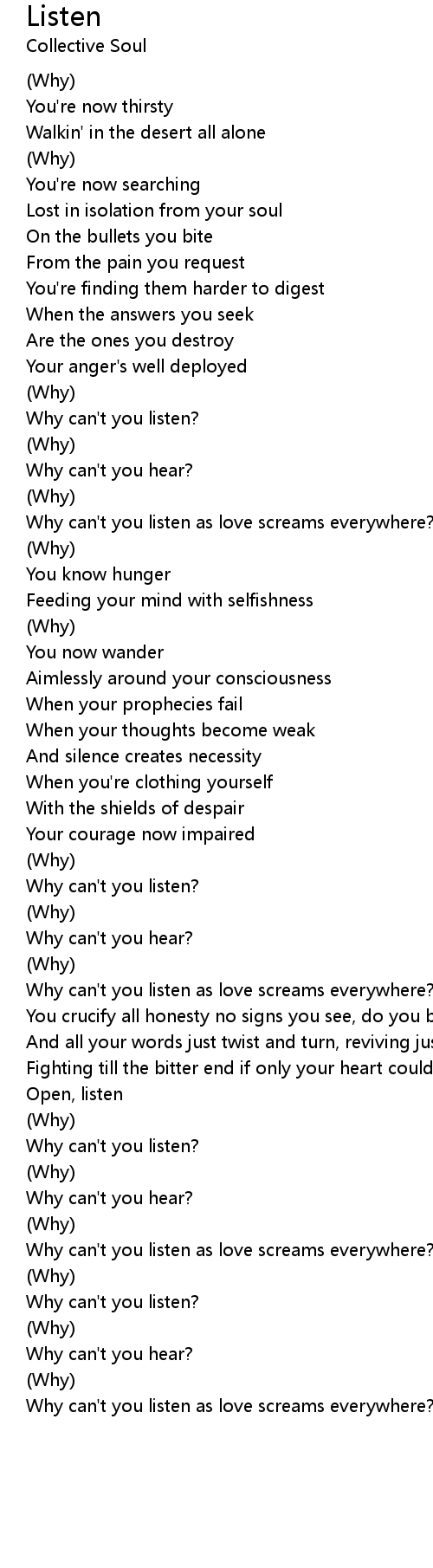 Why can't you listen as love screams everywhere? |