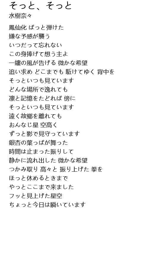 | 追い求め どこまでも 駈けてゆく 背中を | |