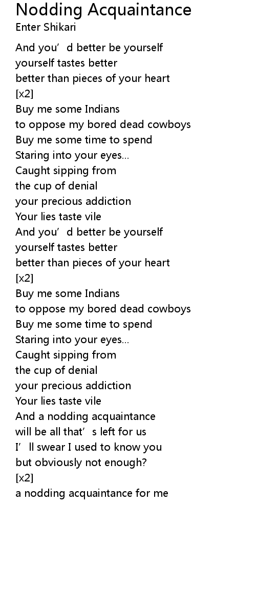 | Song | Nodding Acquaintance |