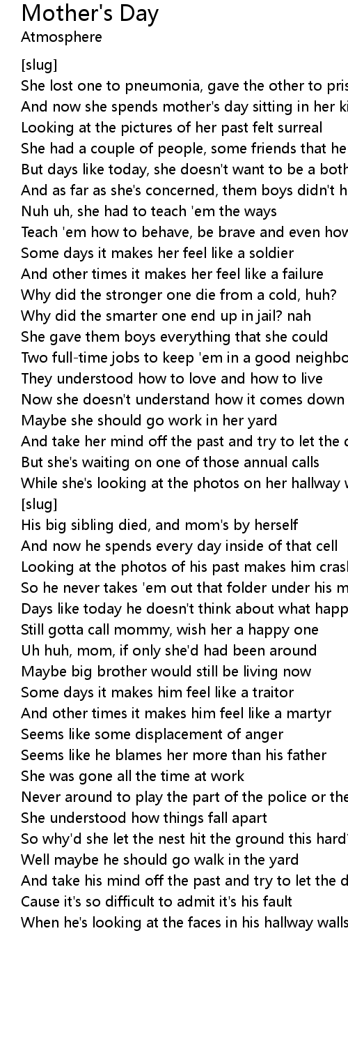 And now she spends mother's day sitting in her kitchen |
