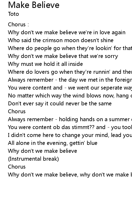 | Why don't we make believe, why don't we make believe |