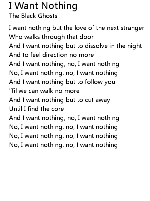 And I want nothing, no, I want nothing |