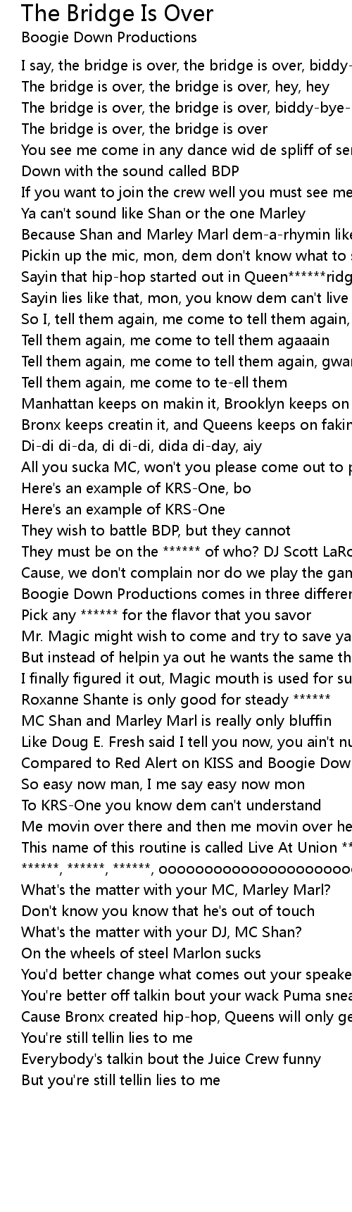 I say, the bridge is over, the bridge is over, biddy-bye-bye |