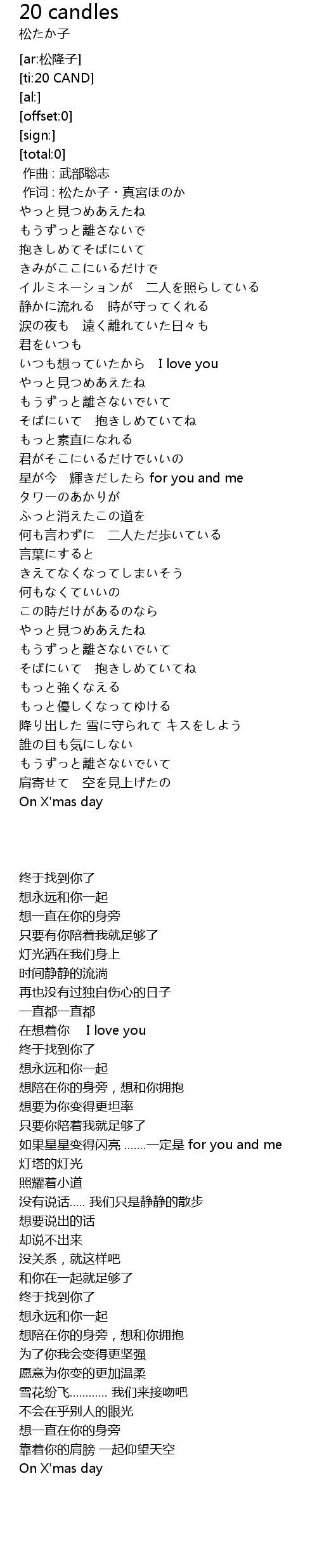 | [00:00.349] | 作词 : 松たか子・真宮ほのか |