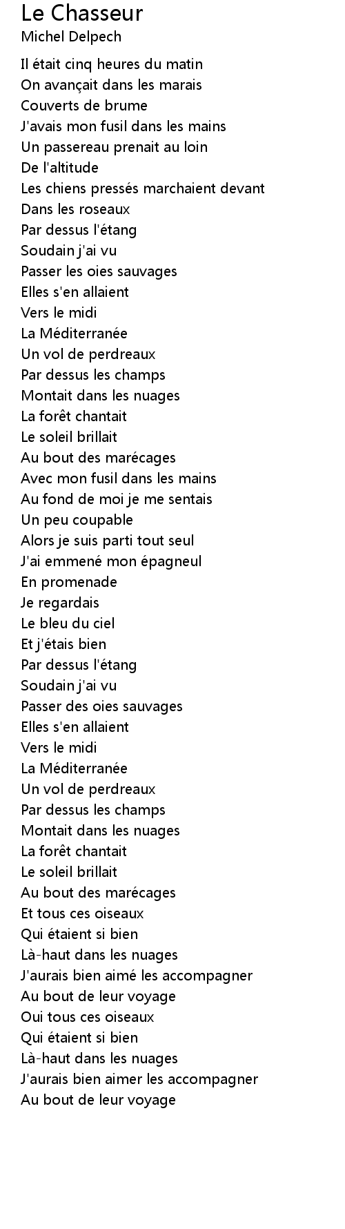 | Song | Le Chasseur |