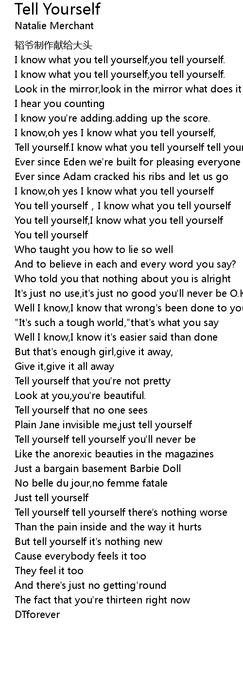 | [01:07.879] | Tell yourself. I know what you tell yourself tell yourself |